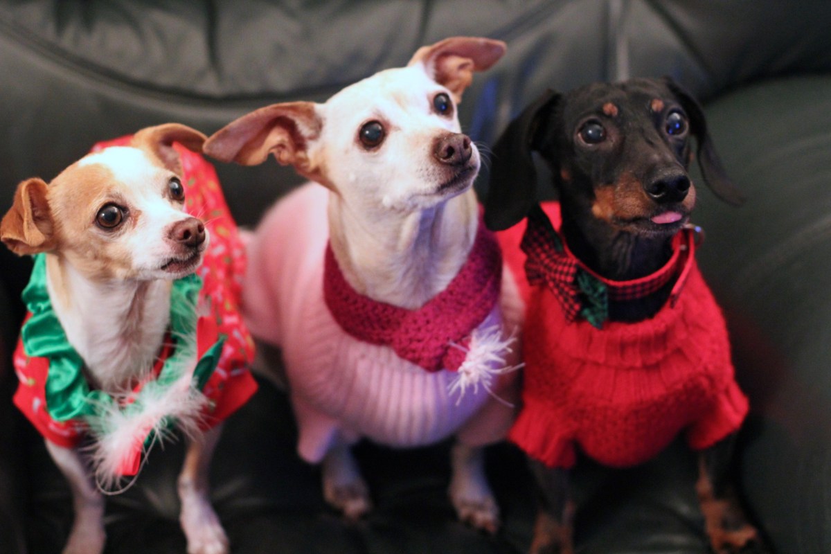 My fur kids and I wish you all Happy Holidays, Merry Christmas, Happy Hanukah and more. It took a lot of wrangling of my husband to get this picture of my three fur kids (Elmo, Peach and LeBron). He’s not as well trained as they are! I would love to see your holiday photos of your four-legged family members! http://cafepress.com/coldnosedesign